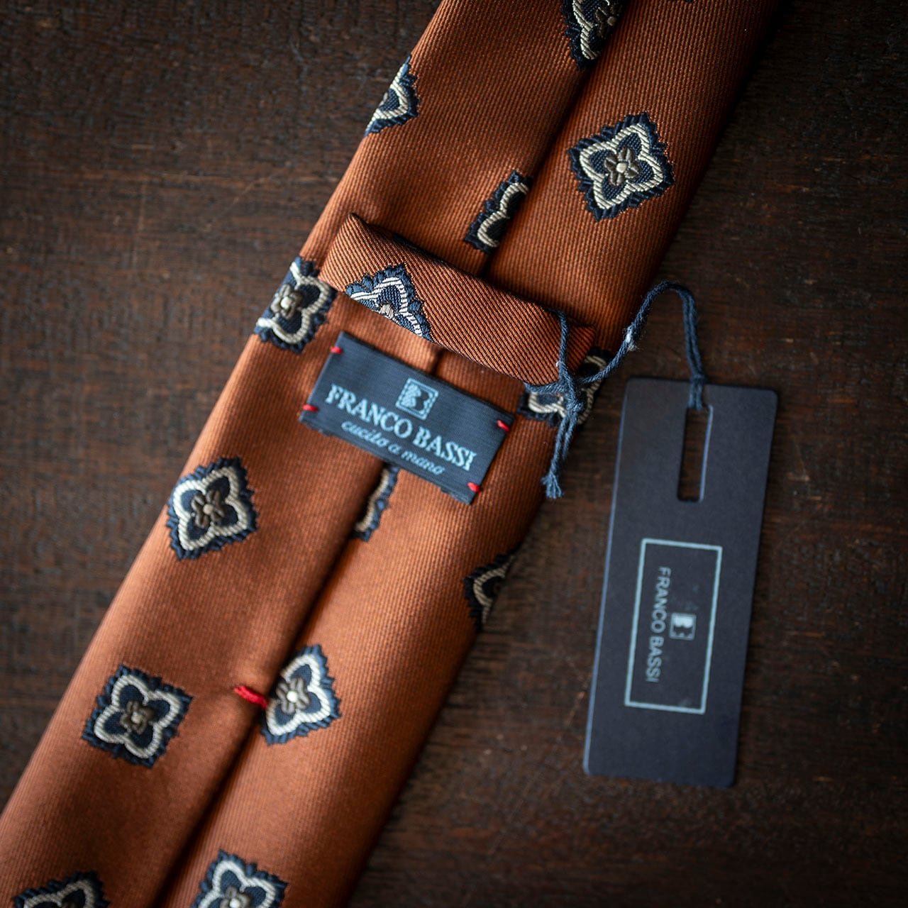 1973年にイタリア北西部にある世界的に有名なシルクの生産地、コモに設立された「FRANCO BASSI」。ファミリー経営を基盤とし、手裁断と手縫製による生産と時代の空気を取り入れるトレンド性の高さが特徴です。シーズン毎に約300種類ものデザインを発表し、冬はウールとカシミヤ、夏はシルクやリネンなど素材にこだわったタイ作りを手がけています。現在も縫製は100%イタリア・コモで行なわれています。